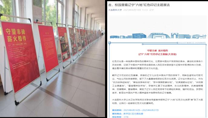 为认真学习贯彻党的二十大精神,大力弘扬和宣传红色文化,加强大学生爱党、爱国主义教育,2025年“七一”期间,开云kaiyun官方网站党总支联合学校党委宣传部在校内成功举办了“守望丰碑薪火相传”辽宁“六地”红色印记主题展活动,开云kaiyun官方网站学生党支部党员及入党积极分子担任红色志愿讲解员,吸引了众多师生参观,取得了良好反响。