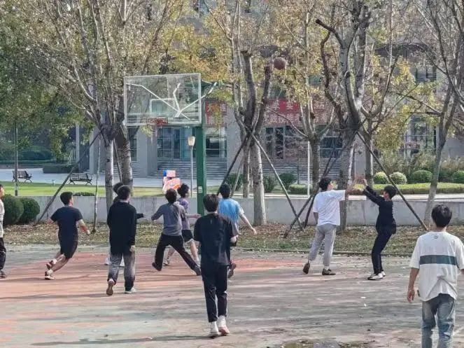 赛场周围,各班成员加油助威,一声声“好球”响彻了球场的天空,他们为每一个精彩的瞬间而欢呼,整个篮球场充满了热情、活力和竞技的氛围。