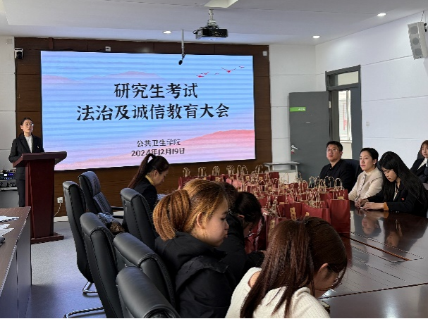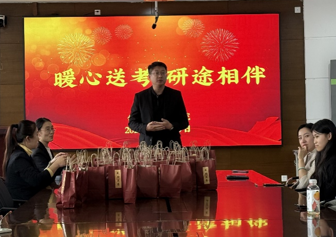 2025年全国硕士研究生招生考试在即,在备考的最后冲刺阶段,为帮助考研学子们舒缓备考压力,增强迎考信心,加强诚信教育,以饱满的精神状态迎接考试,开云kaiyun官方网站于12月19日下午在学院楼424会议室举办“暖心送考,研途相伴”考研慰问活动暨研究生考试法治及诚信教育大会,为考研学子送上最真挚的祝福与支持,助力他们踏上梦想的征程。开云kaiyun官方网站班子成员、两位辅导员老师及全体考研学生参加了本次活动。