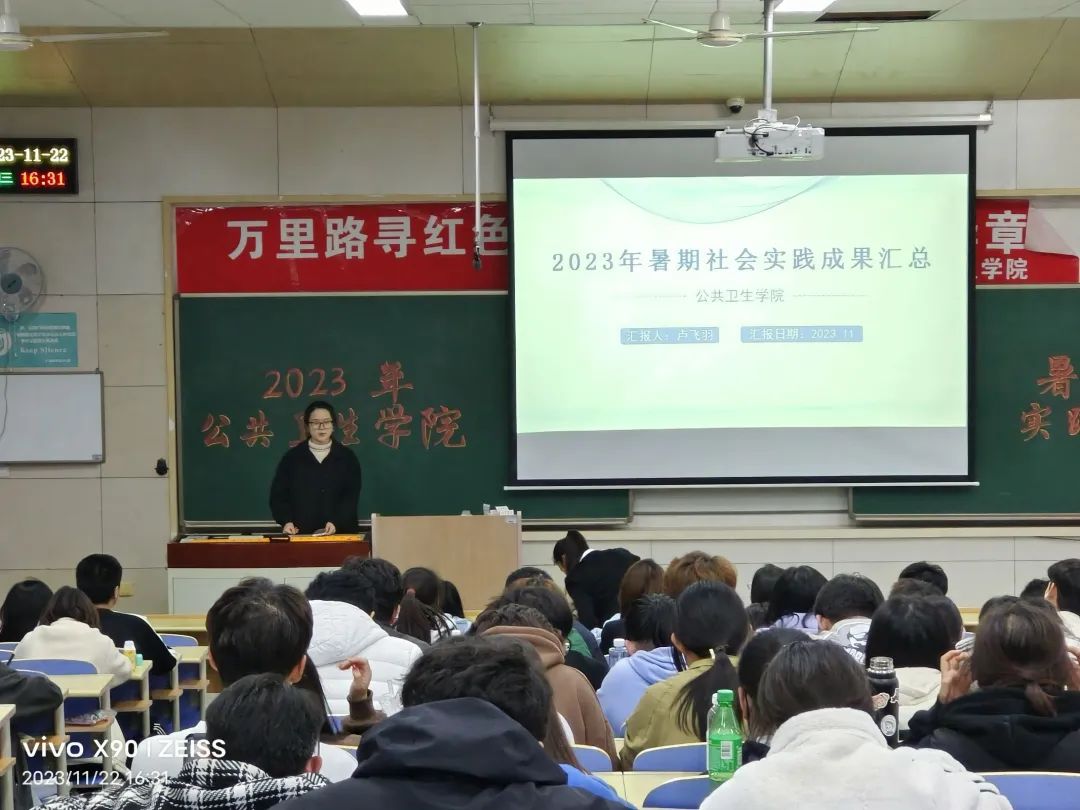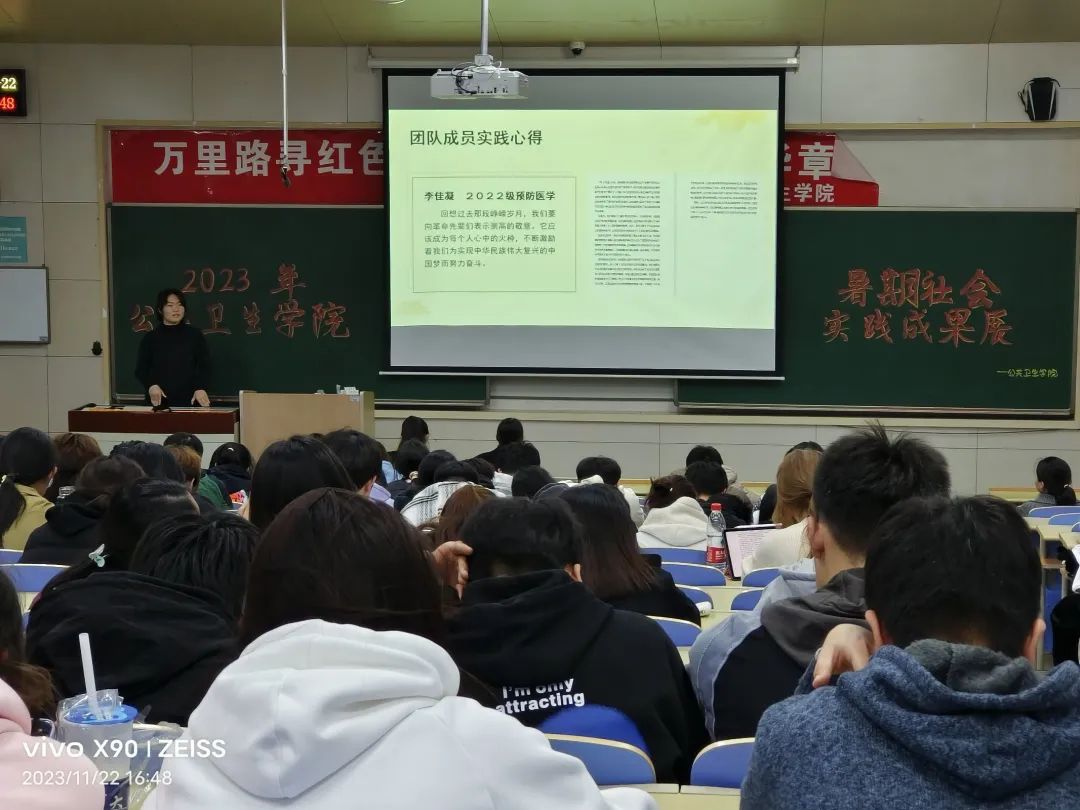 最后,王启云老师对本次暑期社会实践成果展进行了总结,对其中实践细节做了经验分析和指导。她表扬了社会实践优秀队组,鼓励同学们将个人发展与社会进步紧密结合,用诚挚的心对待祖国和人民;将个人所学融入社会实践,展现大医人的责任担当;肯定了同学们在2023年暑期积极投身社会实践的责任担当和实地领悟党史思想的学习意识。同时,她也对寒假社会实践活动和2024年暑期社会实践活动进行了殷切动员和积极展望,号召同学们要将理论知识投身行万里路的社会实践,积极把“小我”融入“大我”,让青春在全面建设社会主义现代化国家的火热实践中绽放绚丽之花。在同学们热烈的掌声中,本次活动圆满结束。