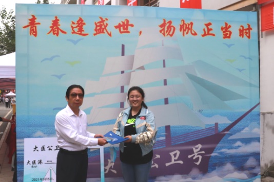 迎新当日,学院党总支书记姜平与院长孙鲜策也来到迎新服务点,询问了迎新工作的人员安排、物品配备、后勤保障与迎新工作的进展等各方面的详细情况,亲切地慰问了现场参与迎新活动的志愿者们。同时与新生进行沟通交流,对新同学的到来表示欢迎,并为新生赠送写有“存储大医青春,奋进时代征程”字样的U盘,希望新生们可以将在大医校园内的美好回忆留存起来,努力拼搏,鼓励同学们珍惜大学时光,自立自强,为祖国建设贡献青春力量。