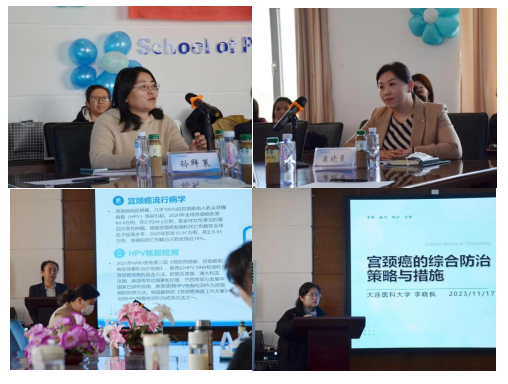 大连分会场活动由学院孙鲜策院长主持。大连市疾病预防控制中心副主任崔晓曼以“落实《消除宫颈癌》倡议,携手绘就新图景”为题做了精彩的报告。学院李晓枫教授与马莉教授分别对宫颈癌的综合防治策略与措施、HPV核酸检测在宫颈癌筛查中应用的推荐指南相关知识进行了介绍。