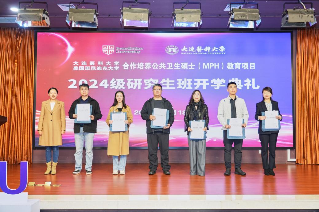10月18日下午,大连医科大学与美国班尼迪克大学合作举办公共卫生硕士学位教育项目(以下简称中美合作MPH项目)2024级研究生班开学典礼在图书馆二楼多功能厅隆重举行。本次典礼由开云kaiyun官方网站党总支书记兼副院长于泳主持,开云kaiyun官方网站院长孙鲜策、副院长陈欣、中方任课教师代表、优秀毕业生代表以及2024级全体新生参加。