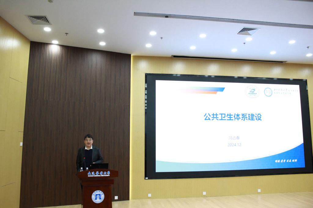 冯占春教授从突发重大公共卫生事件的启示出发,深入探讨了公共卫生体系在保障人民健康、国家安全及推进中国式现代化中的重要作用与战略意义。他重点分析了公共卫生治理与服务能力的跃升、人工智能与信息技术赋能下体系的整合与优化,生动阐释了创新在推动公共卫生事业发展与提升健康水平中的关键作用。通过分享国内外成功案例及实践经验,冯教授提出完善公共卫生治理与服务体系、加强科技与产业支撑等具体建议,并鼓励同学们勇于迎接挑战,探索公共卫生体系新模式,将创新融入学习与科研,推动领域发展。