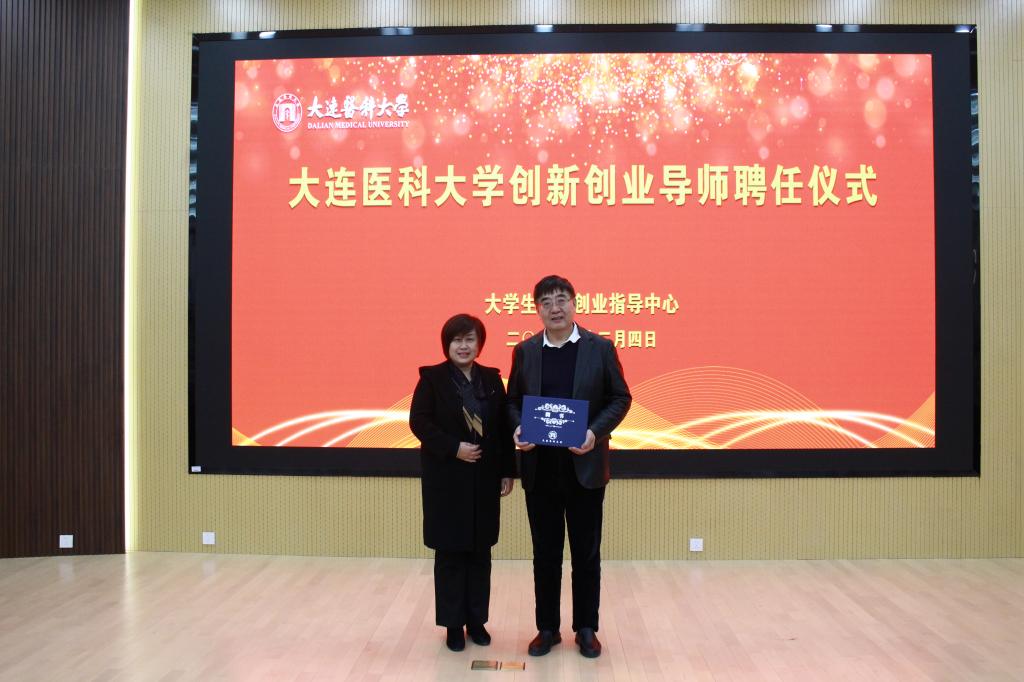 讲座结束后,大学生创新创业指导中心潘艳主任为冯占春教授颁发了大连医科大学创新创业指导教师聘书。