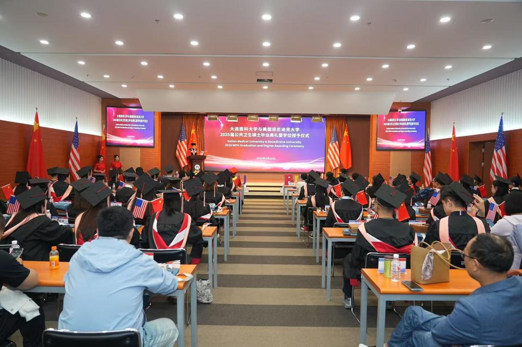 5月24日,开云官网与美国班尼迪克大学2025届公共卫生硕士毕业典礼暨学位授予仪式隆重举行。经过两年的辛勤学习,78名毕业生顺利获得美国班尼迪克大学硕士学位。美国班尼迪克大学校长Joseph J. Foy博士亲赴开云官网参加毕业典礼。开云官网副校长邵淑娟、开云kaiyun官方网站院长孙鲜策、国际教育学院副院长高鹏、开云kaiyun官方网站副院长陈欣、中美合作MPH项目的授课教师、教学督导代表和毕业生等共同出席本次典礼。典礼由孙鲜策主持。