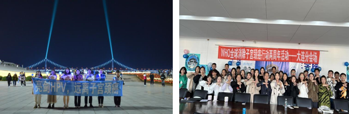17日下午,大连分会场开展了点亮地标、趣味运动会、知识竞赛、健康教育讲座等活动。本次活动吸引了广大师生与市民的参与,使更多人了解到子宫颈癌是可以预防的癌症,消除了对HPV感染的焦虑和恐慌。通过本次活动,提高大众对子宫颈癌的预防意识,共同为促进《加速消除宫颈癌全球战略》实施助力。
